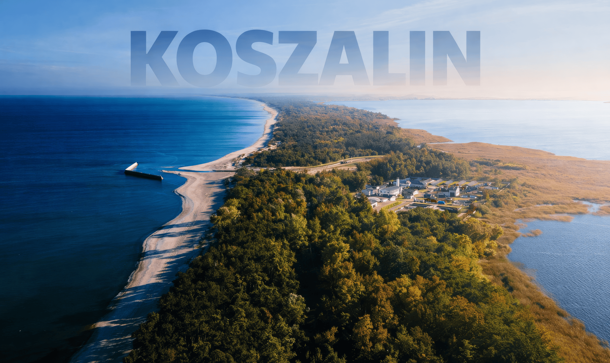 • Koszalin offers breathtaking views of Góra Chełmska and the city skyline, with the vast Baltic Sea in the background, framed by colourful fields and lush forests.